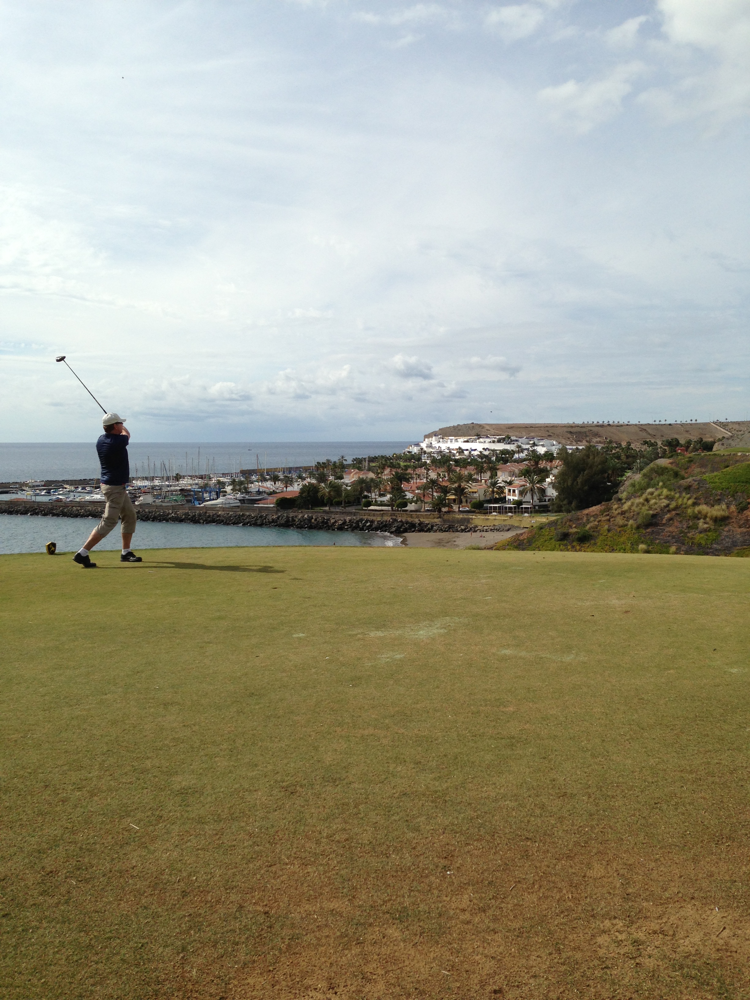 | Beskrivning | Detta var andra gången som vi var på Kanarieöarna men första gången vi åkte på golfresa. Att vi valde detta ställe var värmen i december. Banan var fin och låg vid kusten. De första nio hålen gick mot inlandet för att vända ut mot havet och de sista nio gick alldeles vid kustlinjen. Första nio var inte så svåra om man höll sig på fairway, men hamnade man vid sidan av så bet bermudagräset hårt.