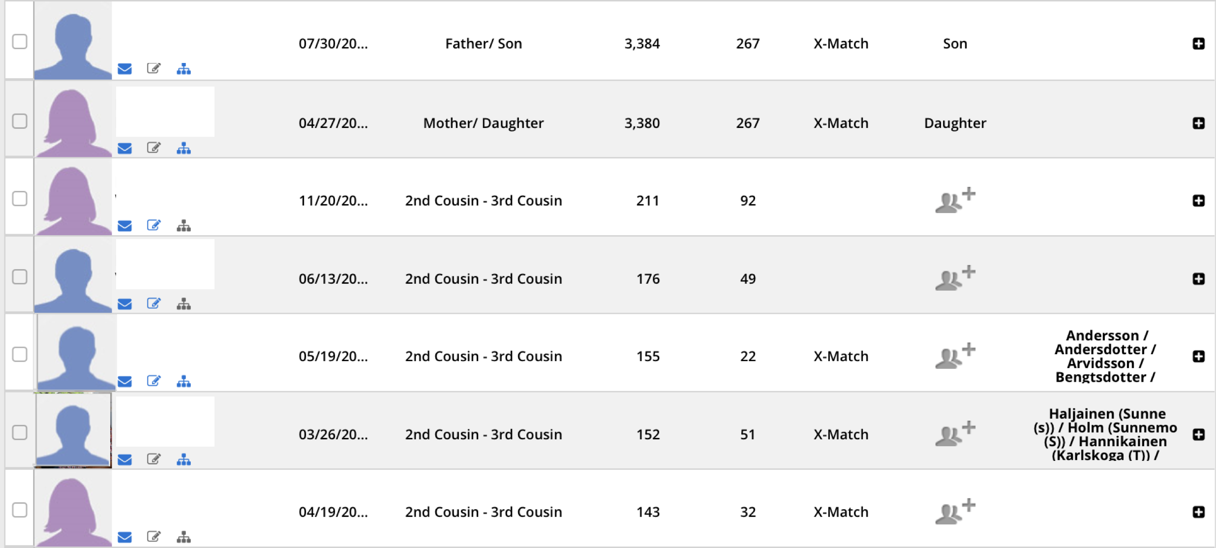 Famlily Tree DNA siten som bilderna är hämtade från Sidan kalla Family Finder Matches